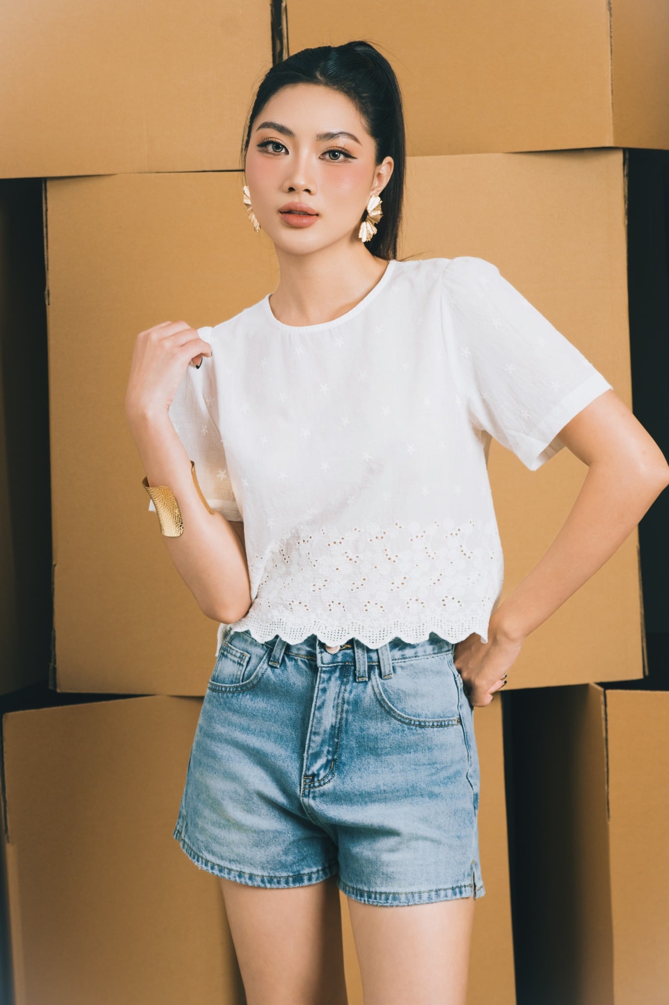 Áo sơ mi kiểu được may từ chất liệu kate cao cấp, nổi bật với bề mặt vải mịn, thoáng mát và ít nhăn, giúp giữ form chuẩn suốt cả ngày. Thiết kế hiện đại, đường may tinh tế mang lại sự chỉnh chu nhưng vẫn mềm mại, nữ tính.